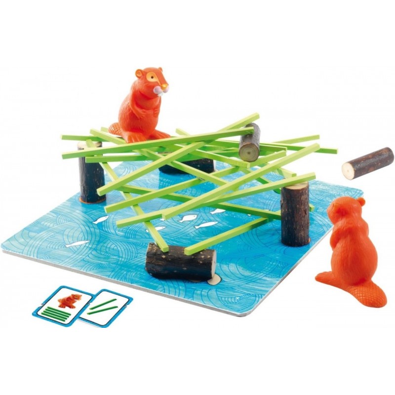 В яркой коробке вы сможете найти: доску (1 шт.), карты (50 шт.), бобров (3 шт.), маленькие бревна (5 шт.), большие бревна (4 шт.), прутики (65 шт.) и пошаговую инструкцию.