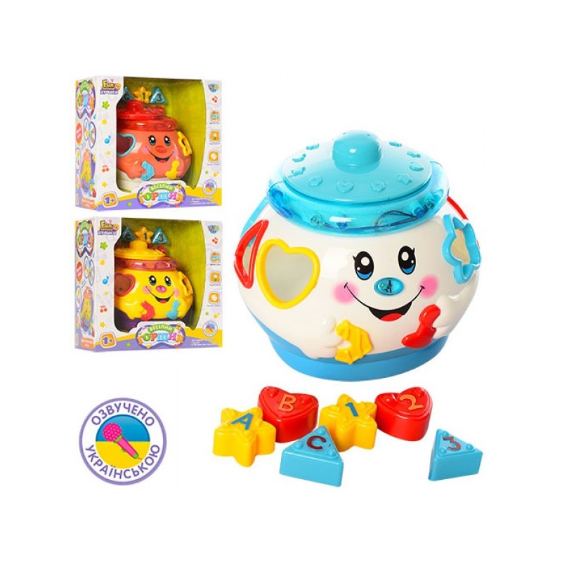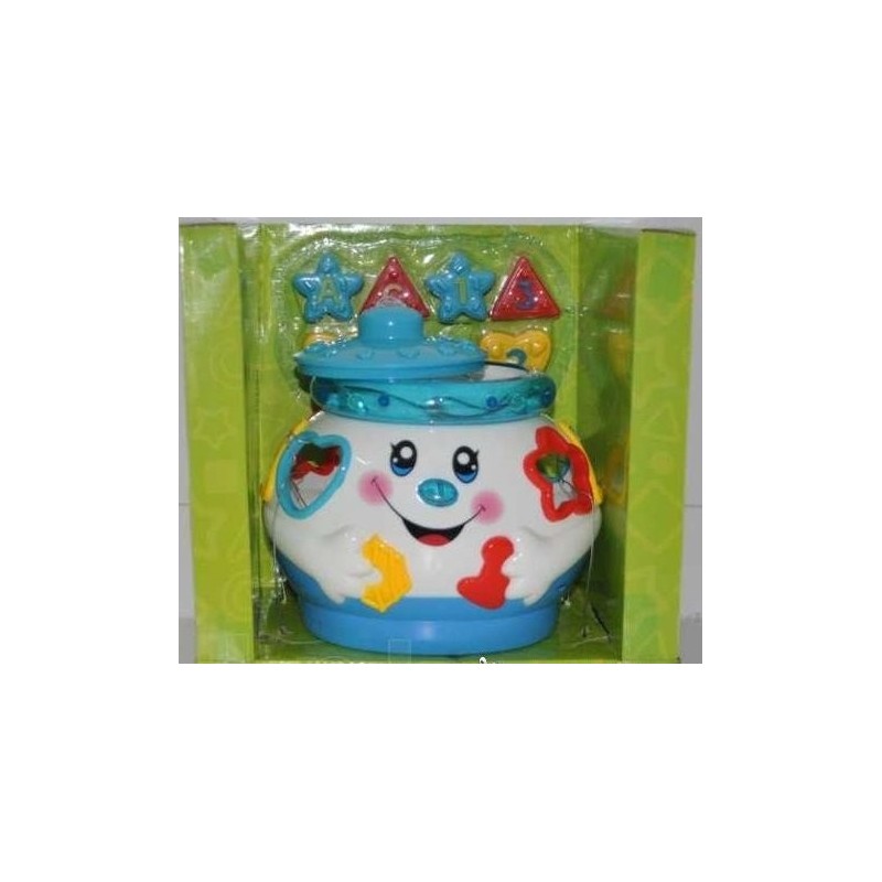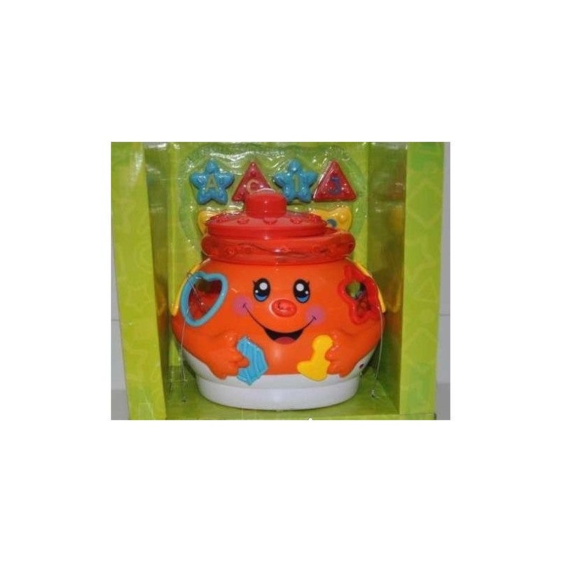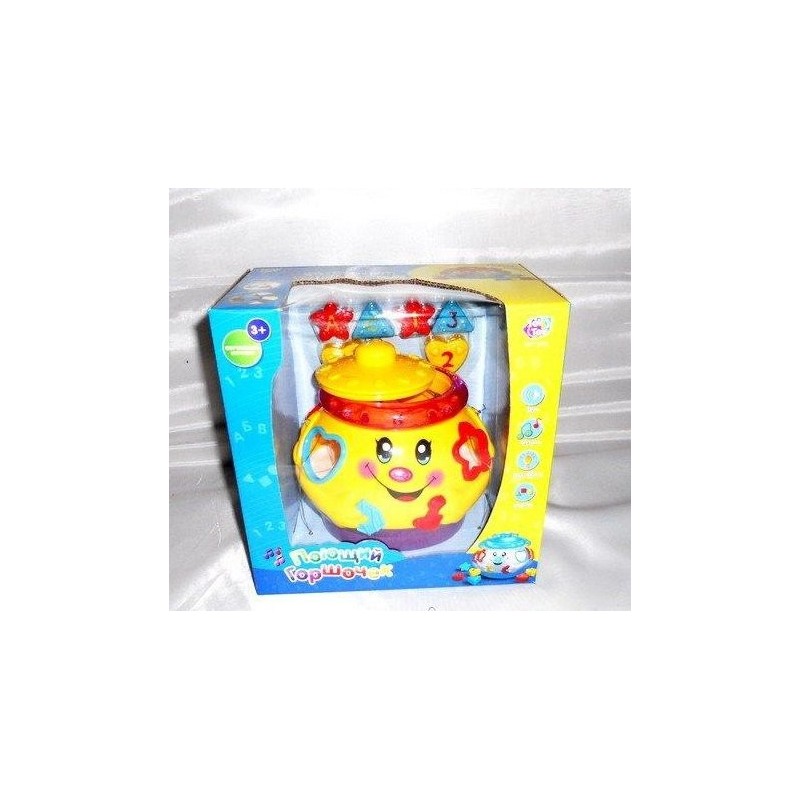 Музыкальный сортер «Горшочек» станет прекрасным дополнением для фантазий малыша. Горшочек этот не простой, а волшебный. Он светится и поет веселые песни. А специальные фигурки, вставленные малышом в отверствия в горшочке развивают мелкую моторику, логику и память,внимание,музыкальный слух,речь и цветовосприятие. Цифры и буквы станут хорошим началом в обучении ребенка грамоте и счету.